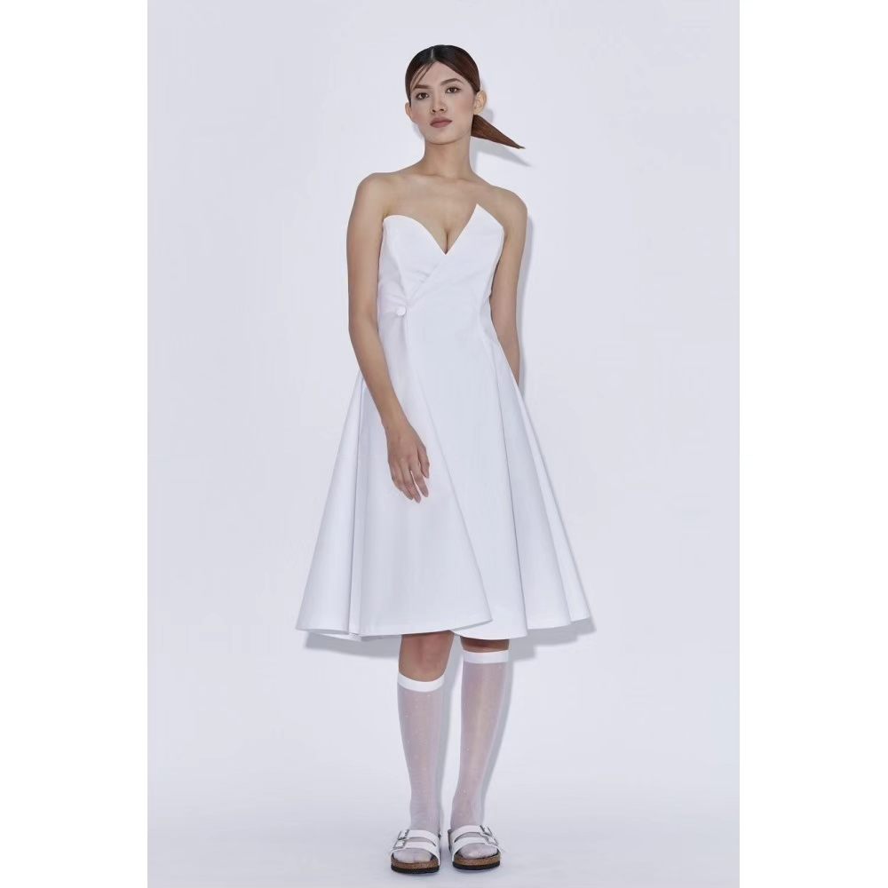 Strapless fit & flare wrapped dress.